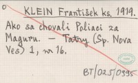 KLEIN František ks. 1919 Ako sa chovali Poliaci za Maguru.