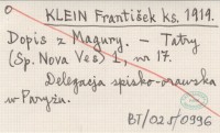 KLEIN František ks. 1919 Podolinské gymnasium? Rolnicku školu do Starej Vsi.