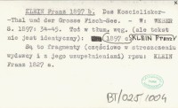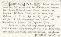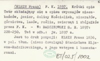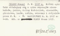 F. K. (KLEIN Franz) 1897 a Krótki opis Tatr składający się z opisu zwyczajów mieszkańców, jezior, doliny Kościelisk, minerałów, górnictwa, lasów, roślin, zwierząt i zbójników przez F. K.