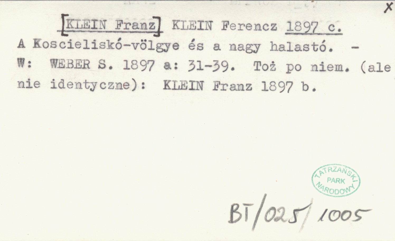 WEBER S. 1897 a. , S. 31-39. Toż po niem. (ale nie identyczne): KLEIN Franz 1897 b.