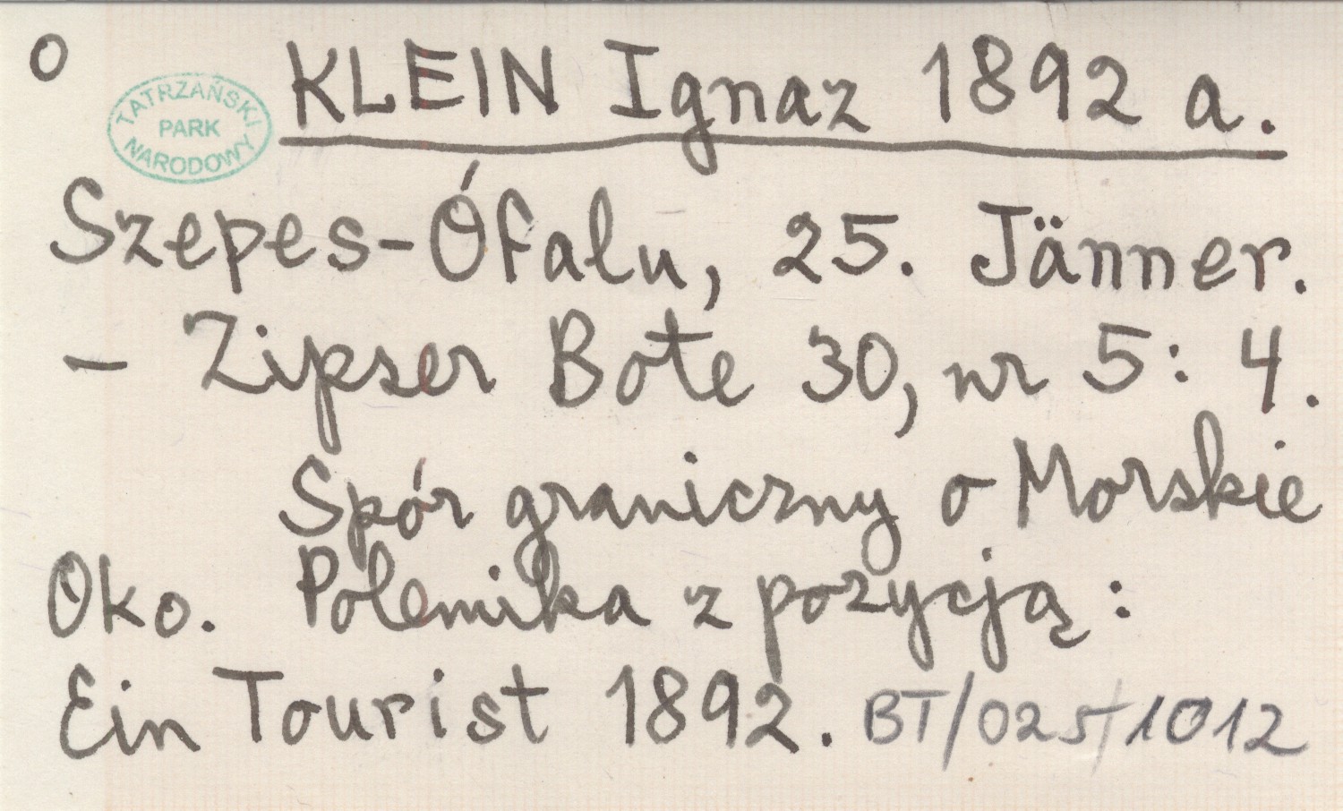 Zipser Bote, 30, nr 5: 4. Spór graniczny o Morskie Oko. Polemika z pozycją: Ein Tourist 1892.