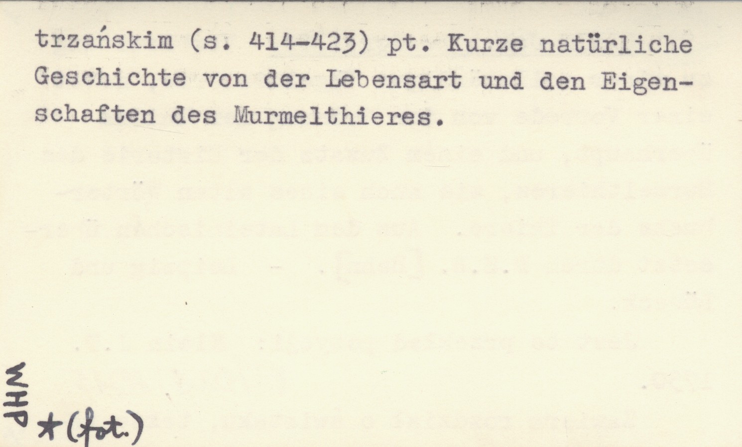 Leipzig ; Lübeck ; , Zawiera rozdział o świstaku, także tatrzańskim (s. 414-423) pt. Kurze natürliche Geschichte von der Lebensart und den Eigenschaften des Murmelthieres. Jest to przekład pozycji: Klein J.T. 1750.