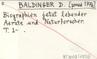 BALDINGER D. [przed 1776] Biographien jetzt lebender Aerzte und Naturforscher.