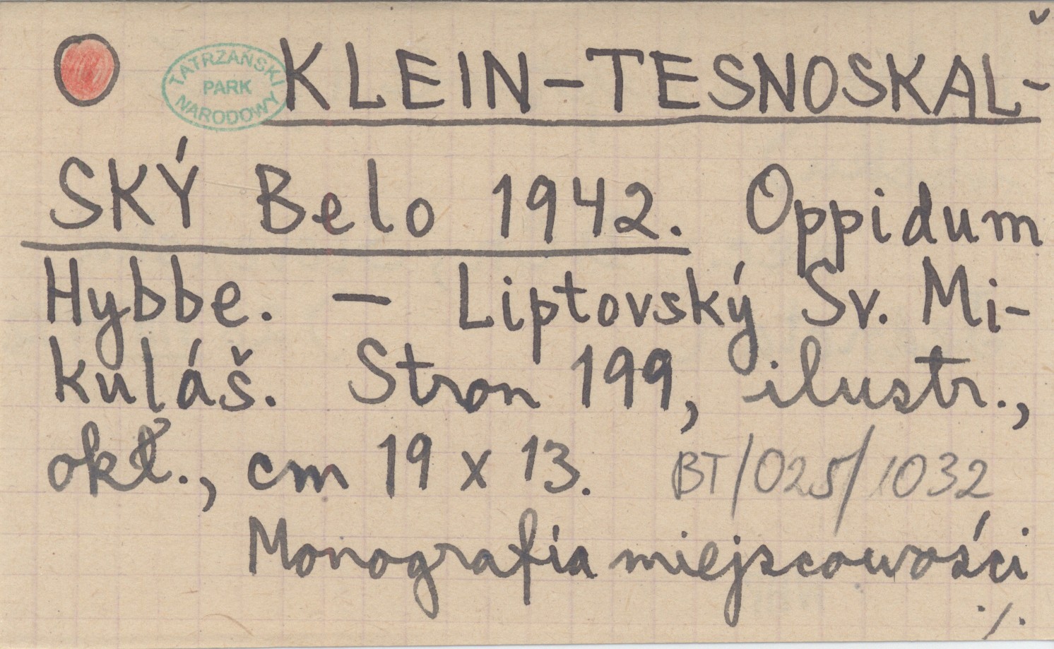Liptovský Sv. Mikuláš , 199 s., il., okł., 19x13 cm. Monografia miejscowości Hybie na Liptowie (po słowacku). REC: D.Ch., Slovenská Jednota 28 VIII 1942