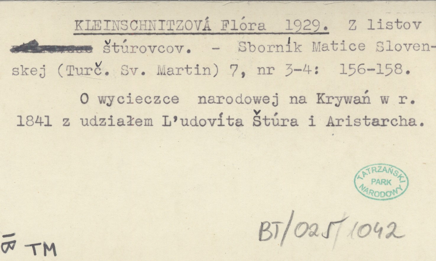 Sborník Matice Slovenskej (Turč. Sv. Martin) , 7, nr 3-4: 156-158. O wycieczce narodowej na Krywań w r. 1841 z udziałem Ľudovíta Štúra i Aristarcha.