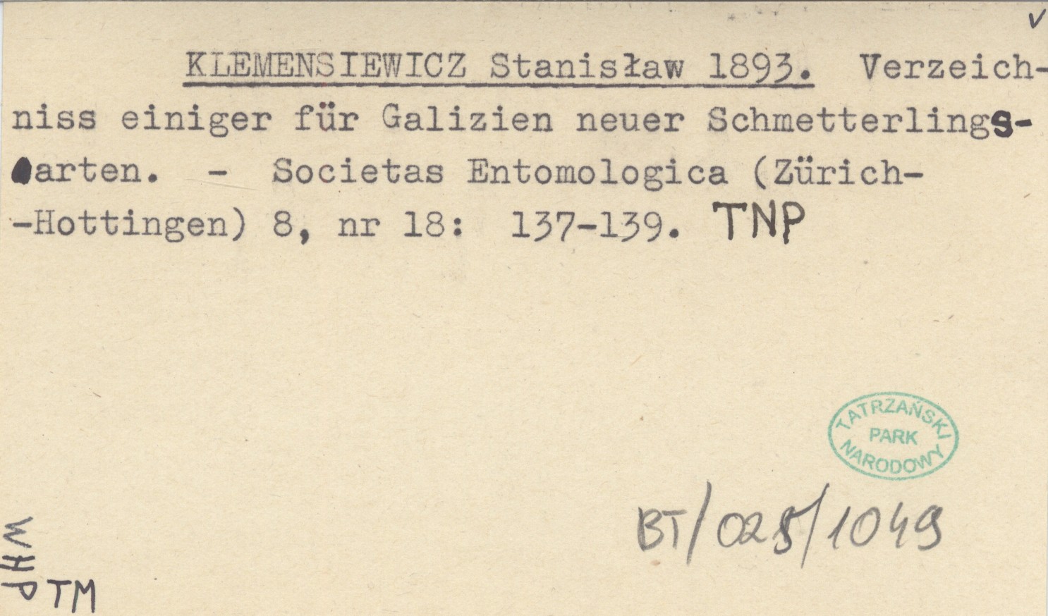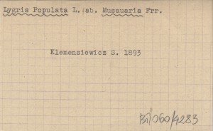 KLEMENSIEWICZ Stanisław 1893 Verzeichniss einiger für Galizien neuer Schmetterlingsarten.