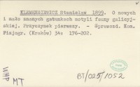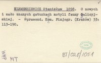 KLEMENSIEWICZ Stanisław 1898 O nowych i mało znanych gatunkach motyli fauny galicyjskiej.