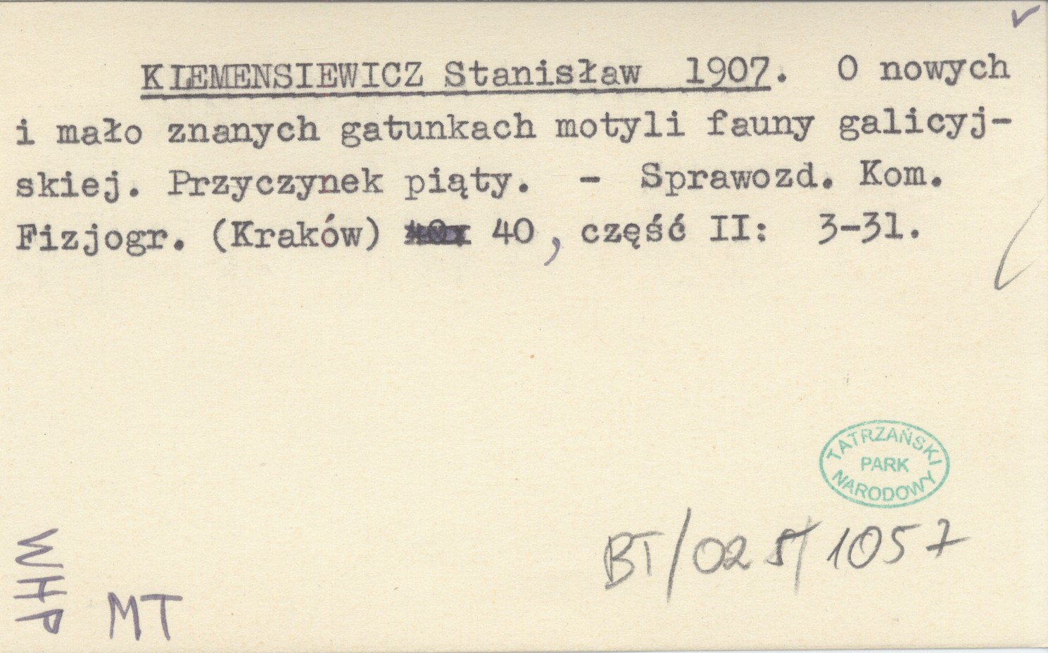 KLEMENSIEWICZ Stanisław 1907 O nowych i mało znanych gatunkach motyli fauny galicyjskiej. Przyczynek piąty.