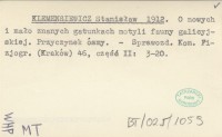 KLEMENSIEWICZ Stanisław 1911 O nowych i mało znanych gatunkach motyli fauny galicyjskiej. Przyczynek siódmy.