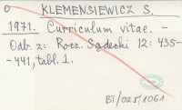 KLEMENSIEWICZ S. 1971 Curriculum vitae.