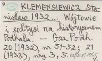 KLEMENSIEWICZ Stanisław 1932... Wójtowie i sołtysi na historycznem Podhalu.
