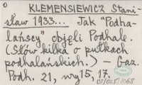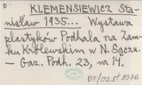 KLEMENSIEWICZ Stanisław 1935... Wystawa plastyków Podhala na Zamku Królewskim w N. Sączu.