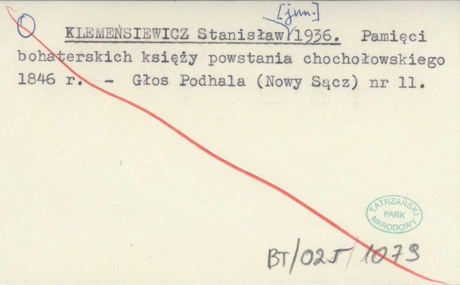 KLEMENSIEWICZ Stanisław [jun.] 1936 Pamięci bohaterskich księży powstania chochołowskiego 1846 r.