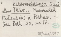 KLEMENSIEWICZ Stanisław 1935... Marszałek Piłsudski a Podhale.