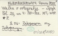 KLEMENSIEWICZ Zenon 1935 Walka o ortografję.