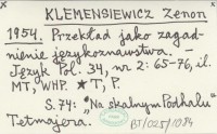 KLEMENSIEWICZ Zenon 1954 Przekład jako zagadnienie językoznawstwa.