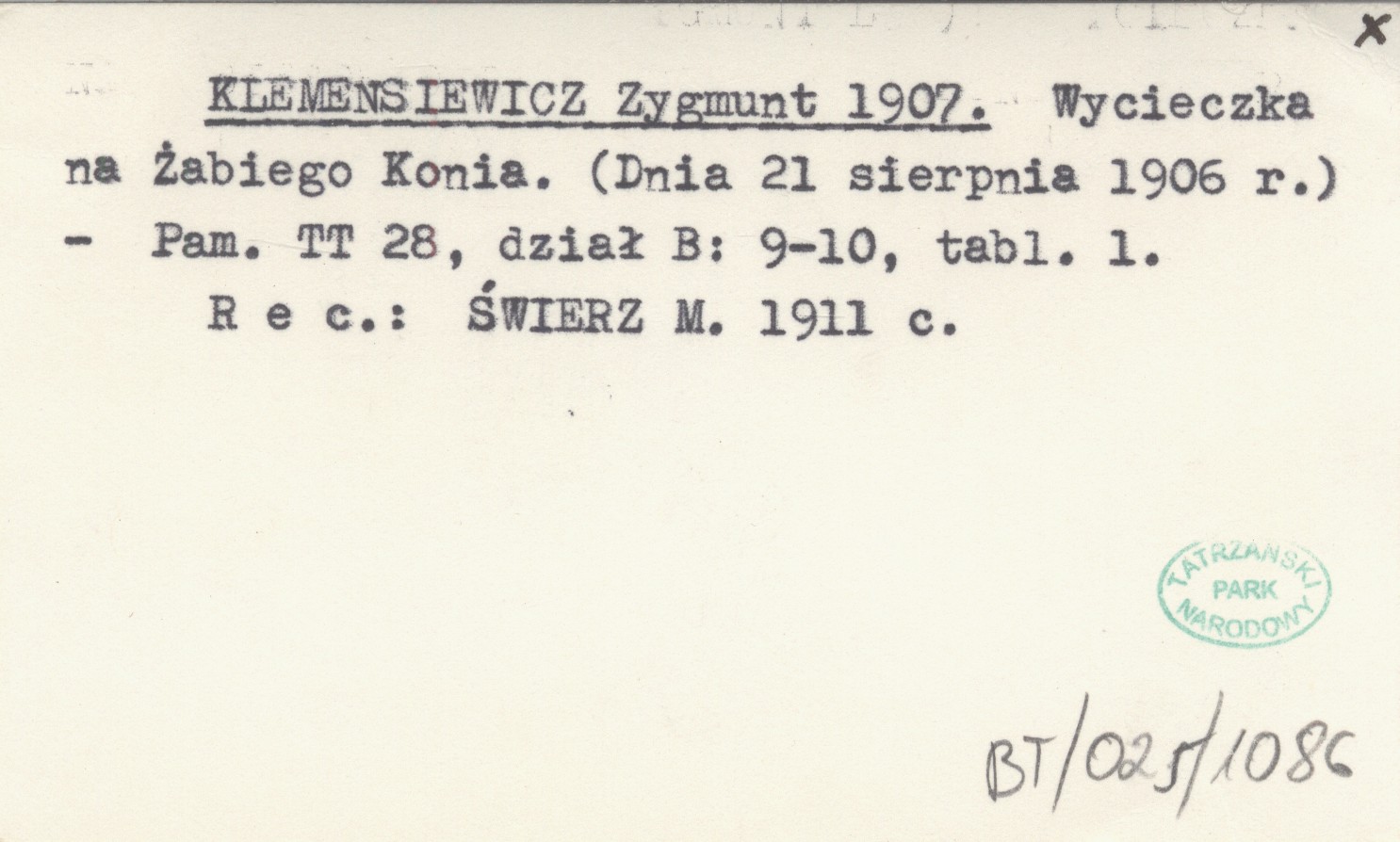 KLEMENSIEWICZ Zygmunt 1907 Wycieczka na Żabiego Konia. (Dnia 21 sierpnia 1906 r.).