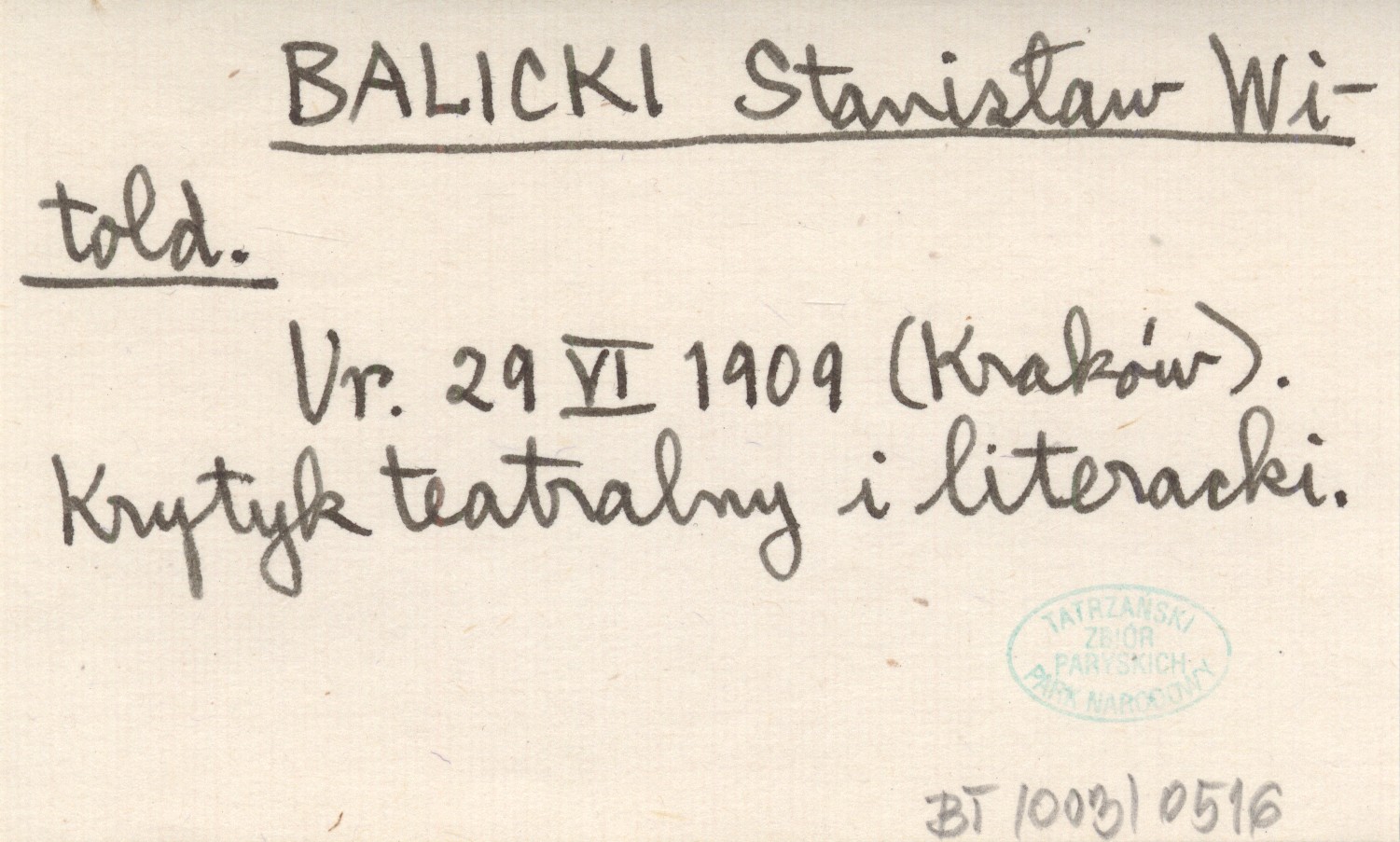 Ur. 29 VI 1909 (Kraków). Krytyk teatralny i literacki.