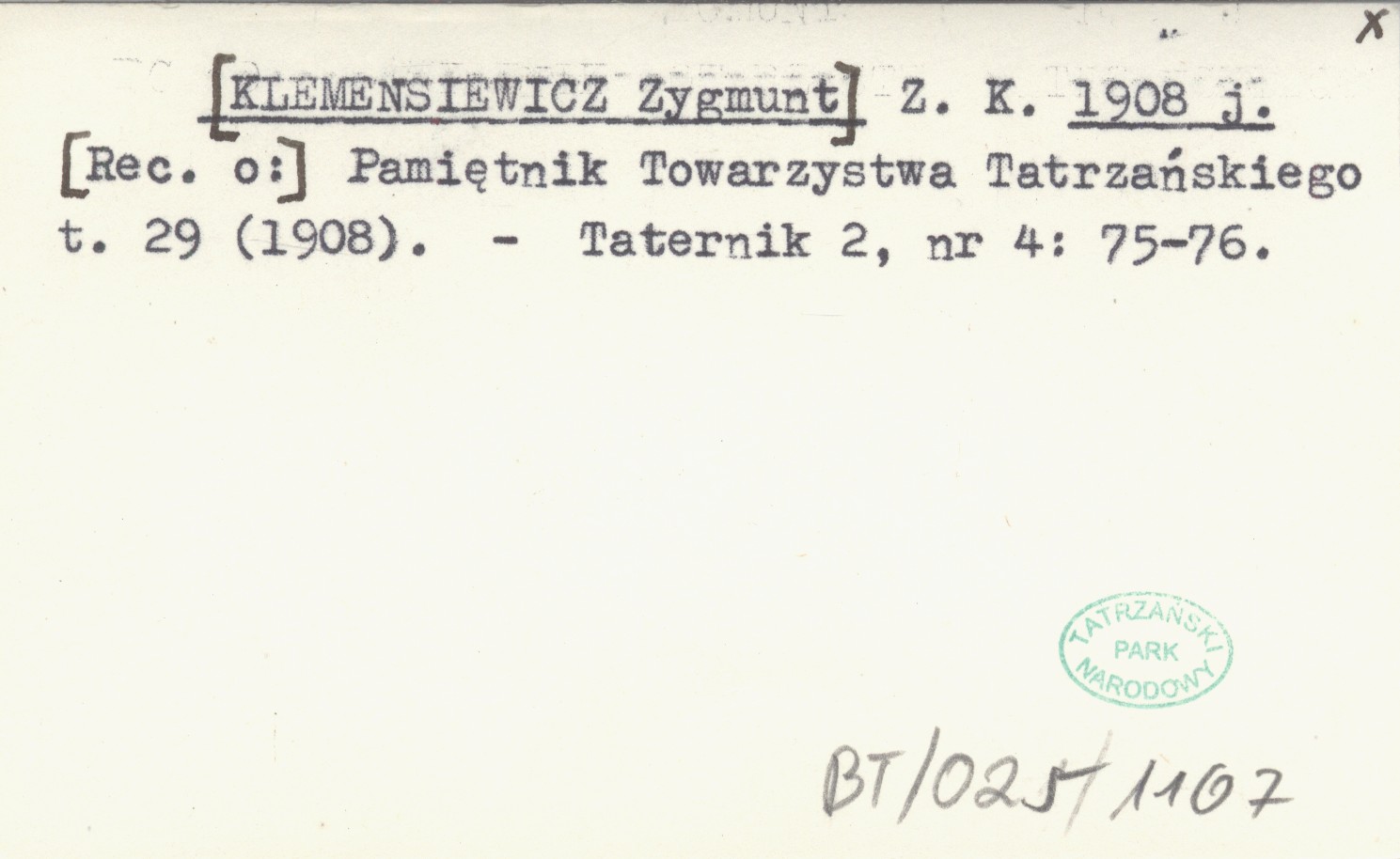 Z. K. [KLEMENSIEWICZ Zygmunt] 1908 j Pamiętnik Towarzystwa tatrzańskiego t. 29 (1908).