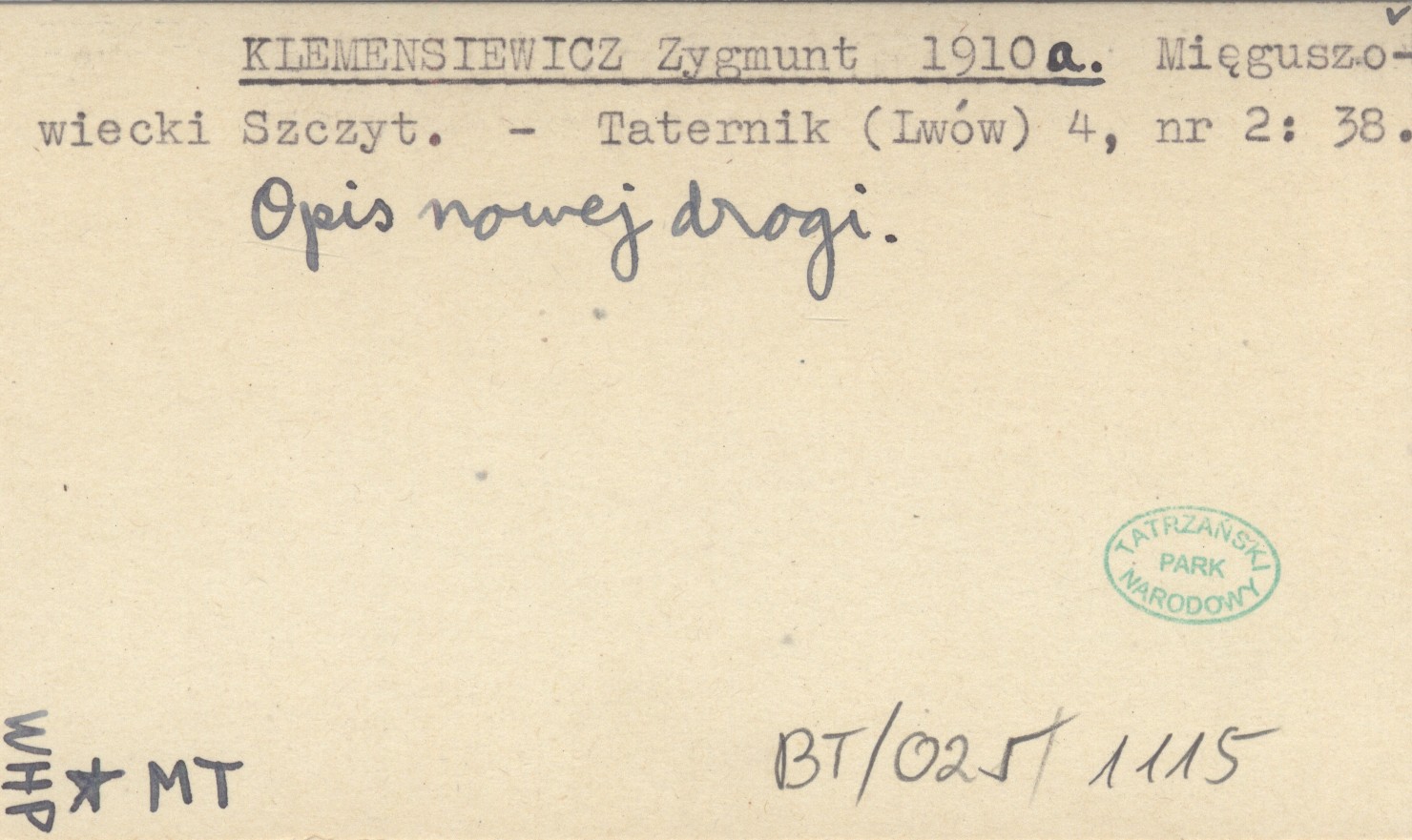 KLEMENSIEWICZ Zygmunt 1910 a Mięguszowiecki Szczyt.