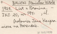 BALICKI Stanisław Witold 1929 List z Poronina.
