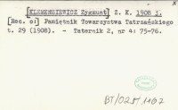 Z. K. [KLEMENSIEWICZ Zygmunt] 1908 j Pamiętnik Towarzystwa tatrzańskiego t. 29 (1908).
