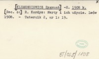 KLEMENSIEWICZ Zygmunt KORDYS, Roman. ; ZNAMIĘCKI, Aleksander. ; 1909 b Siarkan.