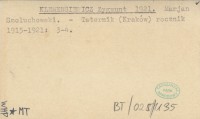 KLEMENSIEWICZ Zygmunt 1921 Marjan Smoluchowski.
