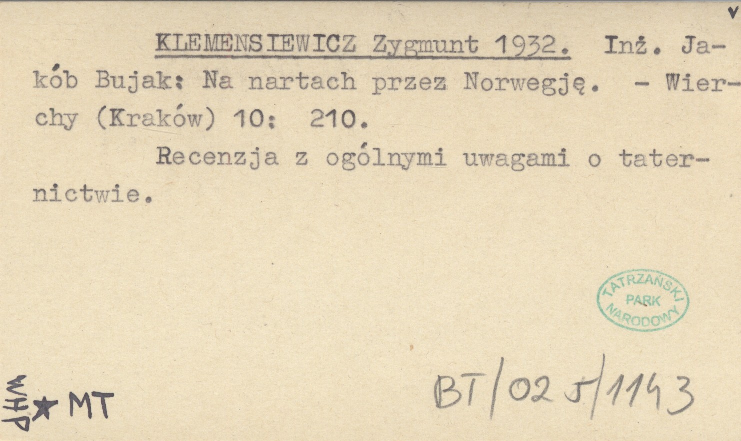 Wierchy (Kraków) , 10: 210. Recenzja z ogólnymi uwagami o taternictwie.