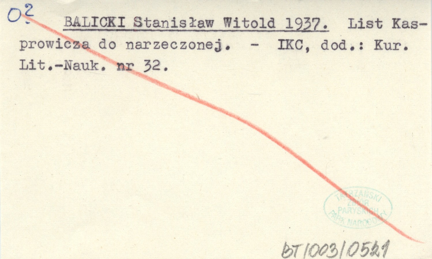 BALICKI Stanisław Witold 1937 List Kasprowicza do narzeczonej.