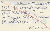 KLEMENSIEWICZ Zygmunt 1909 [O terenach narciarskich Tatr Polskich.].