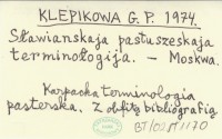 KLEPIKOWA G. P. 1974 Sławianskaja pastuszeskaja terminołogija.