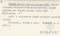 KLESCH Daniel Christophorus 1671 Brevis narratio devastationis & direptionis oppidi Topscha per Turcas factae. Anno 1584.