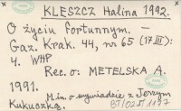 KLESZCZ Halina 1992 O życiu fortunnym.