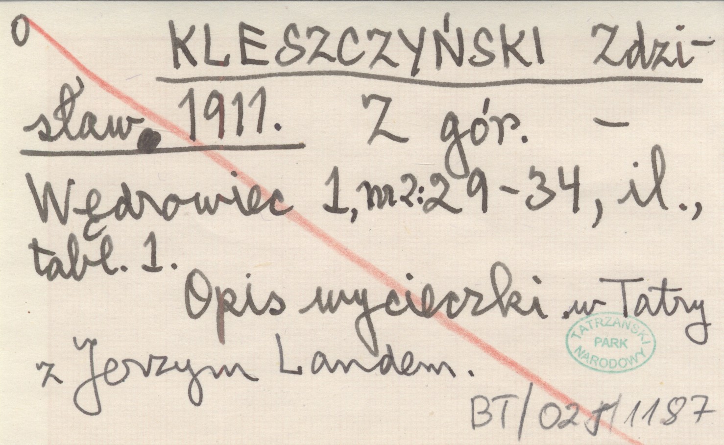 Wędrowiec, 1, nr 2: 29-34, il., 1 k.tabl. Opis wycieczki w Tatry z Jerzym Landem.