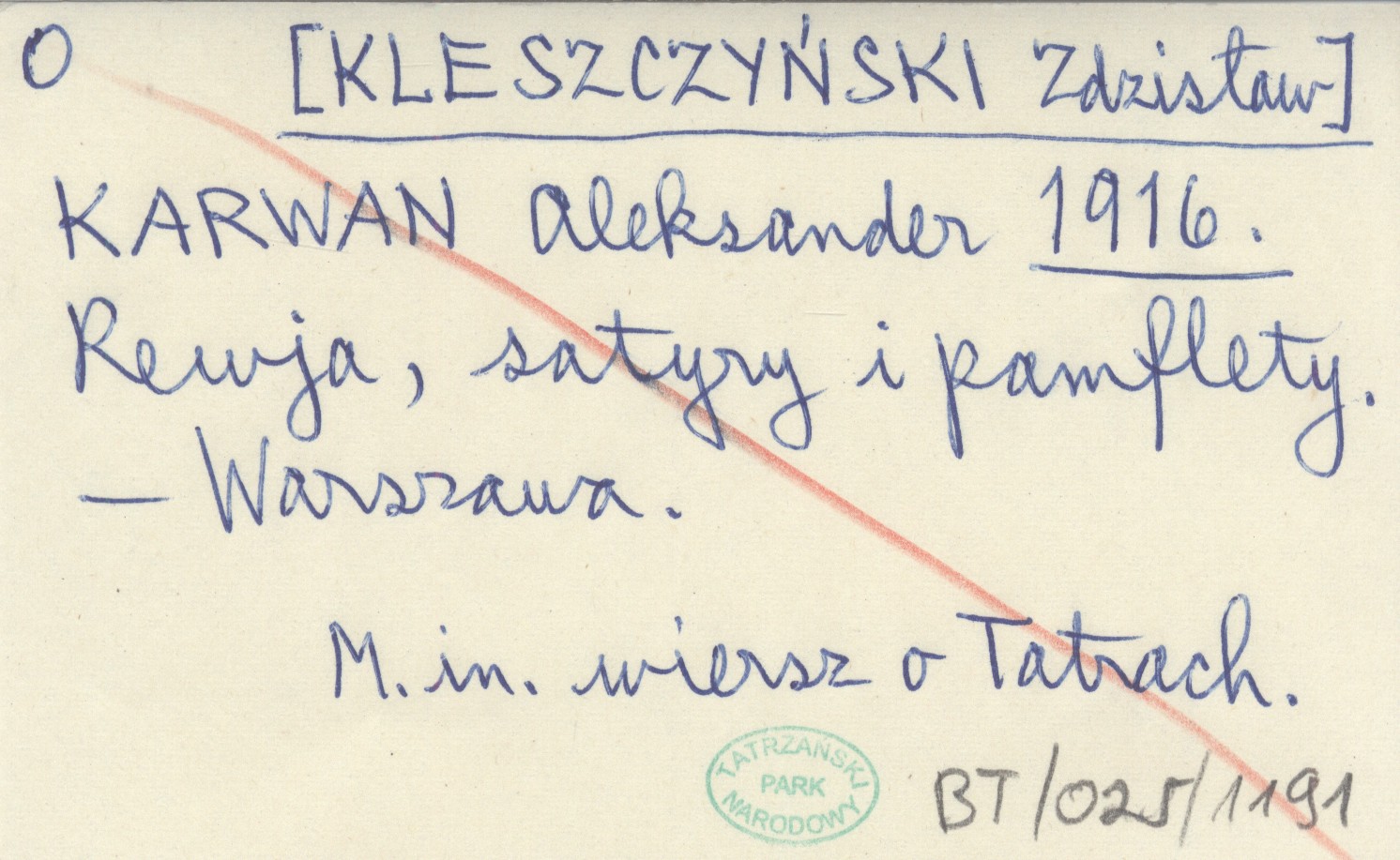 [KLESZCZYŃSKI Zdzisław] KARWAN, Aleksander. ; 1916 Rewja, satyry i pamflety.