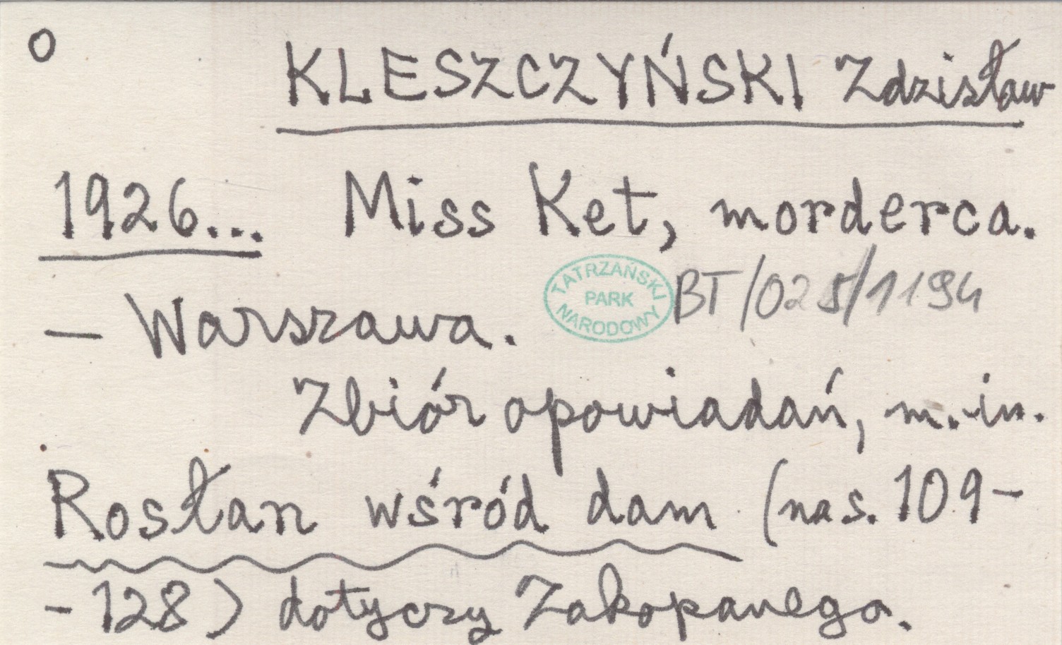 Warszawa , Zbiór opowiadań, m.in. Rosłan wśród dam (na s. 109-128) dotyczy Zakopanego.