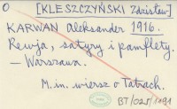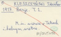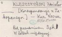 KLESZCZYŃSKI Zdzisław [Korespondencje z Zakopanego.].