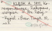 KLĘSK A. 1911 Korespondencye. Zakopane, sierpień.