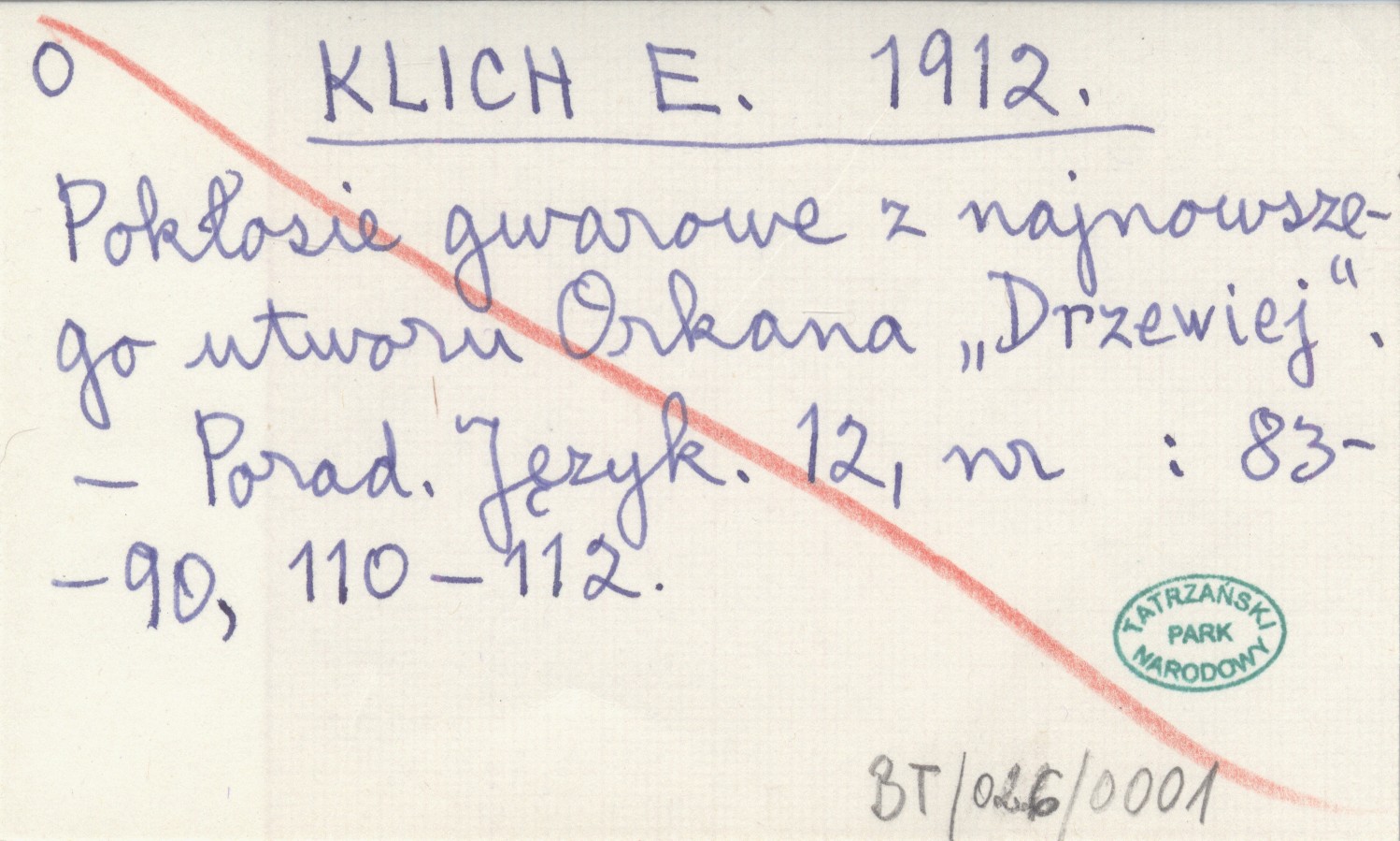 KLICH E. 1912 Pokłosie gwarowe z najnowszego utworu Orkana "Drzewiej".