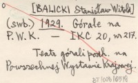 (swb.) [BALICKI Stanisław Witold] 1929 Górale na P.W.K.