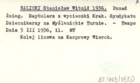 BALICKI Stanisław Witold 1936 Ponad śnieg. Raptularz z wycieczek Krak. Syndykatu Dziennikarzy na Myślenickie Turnie.