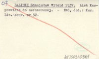 BALICKI Stanisław Witold 1937 List Kasprowicza do narzeczonej.