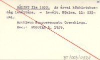 BÁLINT Ila 1933 Az árvai közbirtokosság levéltára.