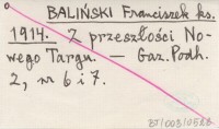 BALIŃSKI Franciszek ks. 1914 Z przeszłości Nowego Targu.