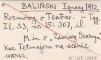 BALIŃSKI Ignacy 1912 Rozmowy o Teatrze.