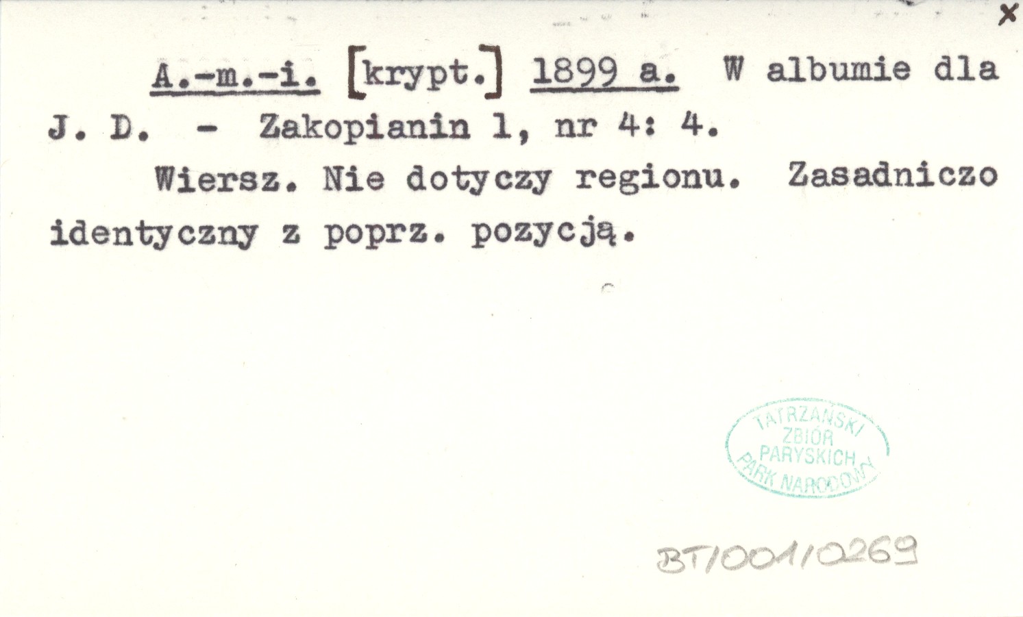 Zakopianin, 1, nr 4: 4. Wiersz. Nie dotyczy regionu. Zasadniczo identyczny z poprz. pozycją.