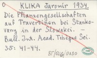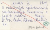 KLIKA J. 1934 O rostlinných společenstvech stankovanských travertinů a jejih sukcesi.