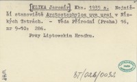 Kka. [KLIKA Jaromír] 1935 a Najnižší stanoviště Arctostaphylos uva ursi v Nízkých Tatrách.