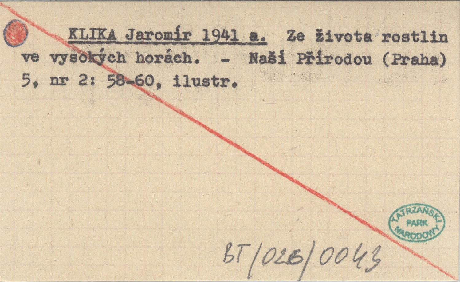 KLIKA Jaromír 1941 a Ze života rostlin ve vysokých horách.